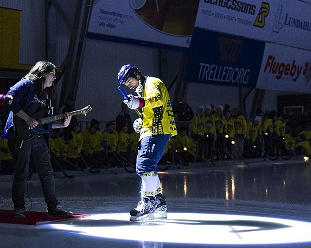 Head Coach Chris Halden poses with Daren Richardson outside the locker room at Stinsen Arena in Nässjö Sweden. Richardson had 3 goals and an assist in the 5-2 win over Nässjö IF.